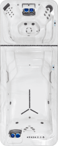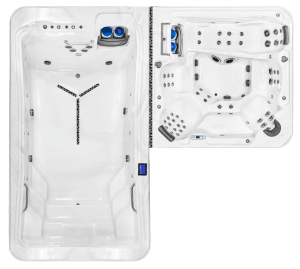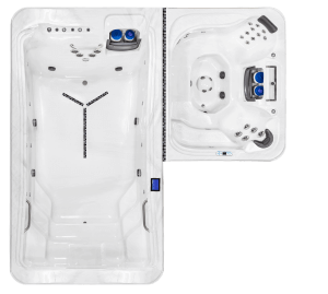 Combining our world-class 14’ exercise pool with your choice of hydrotherapy spa, we’ve seamlessly integrated both into one amazing L-shaped unit. Choose the spa size and features that best fit your family’s needs while enjoying a separate 14’ pool with the temperature maintained independently of the spa.
